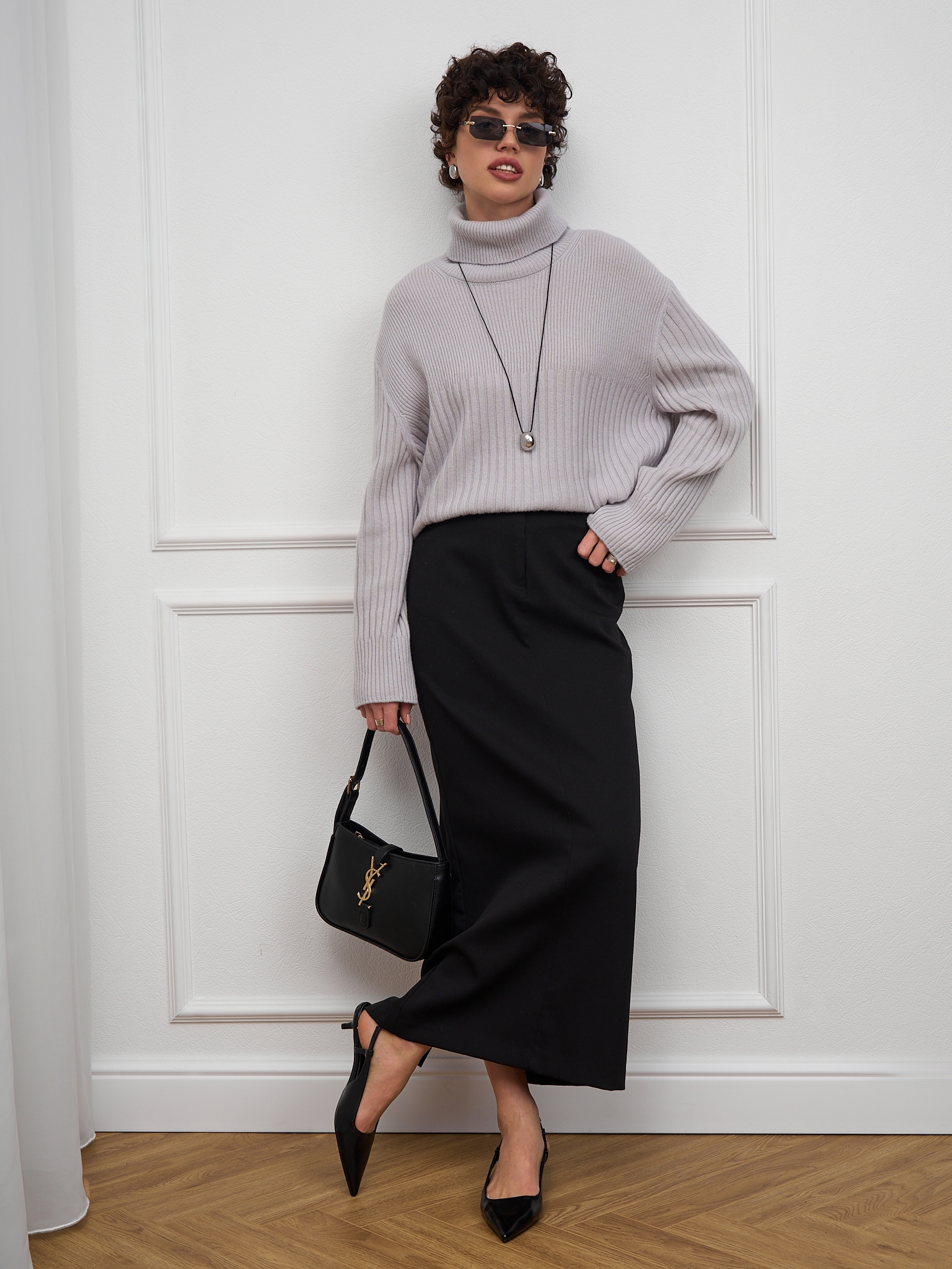 Свободная посадка и спущенное плечо придают легкости образу.